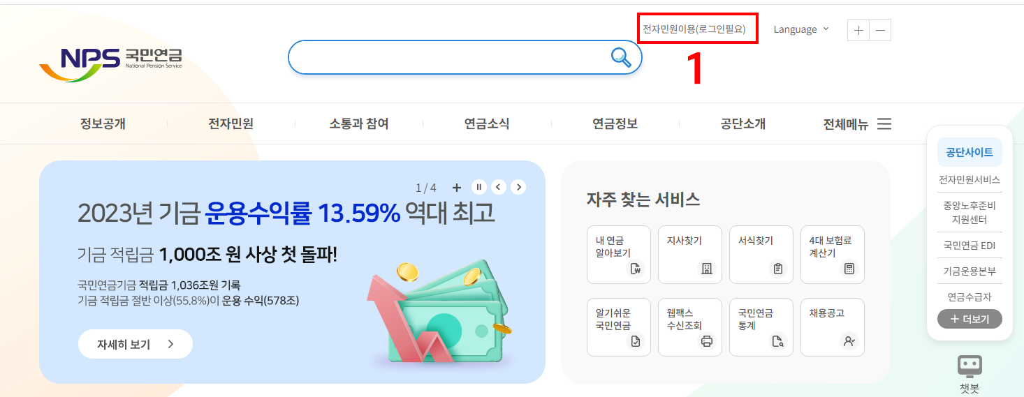 1. 국민연금 홈페이지를 통한 조회 방법