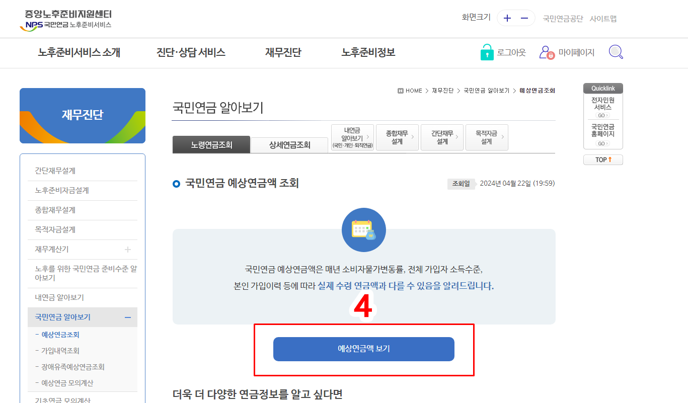 국민연금 모의계산 방법 (예상수령액 조회)