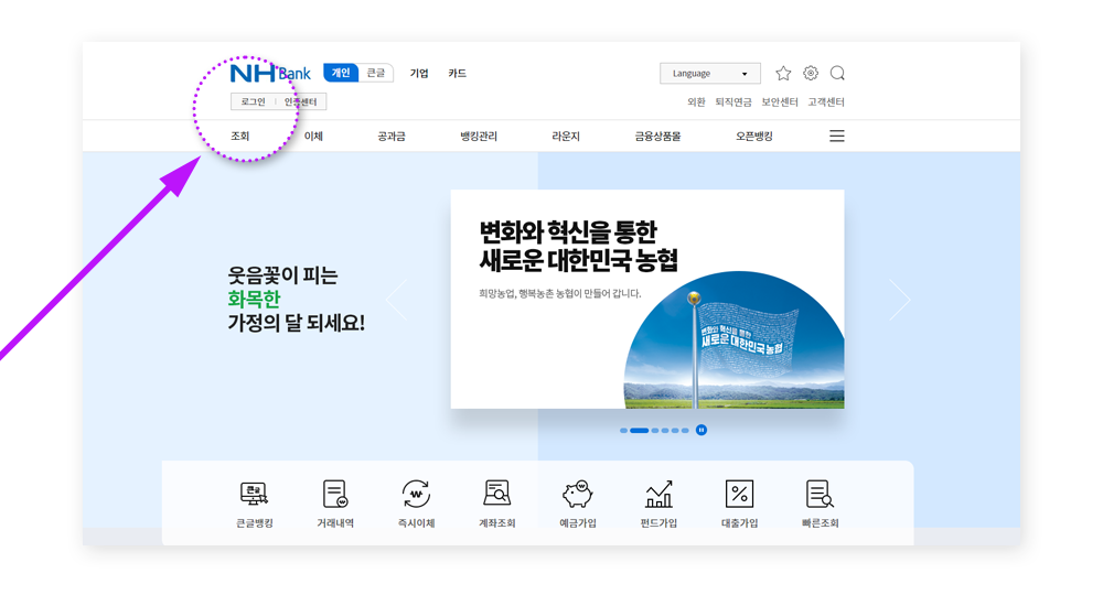 웹브라우저에서 농협인터넷뱅킹에 접속합니다.