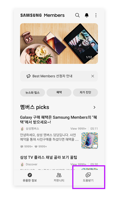 - 구글 플레이스토어 또는 애플 앱스토어에서 '삼성 멤버스' 앱 다운로드