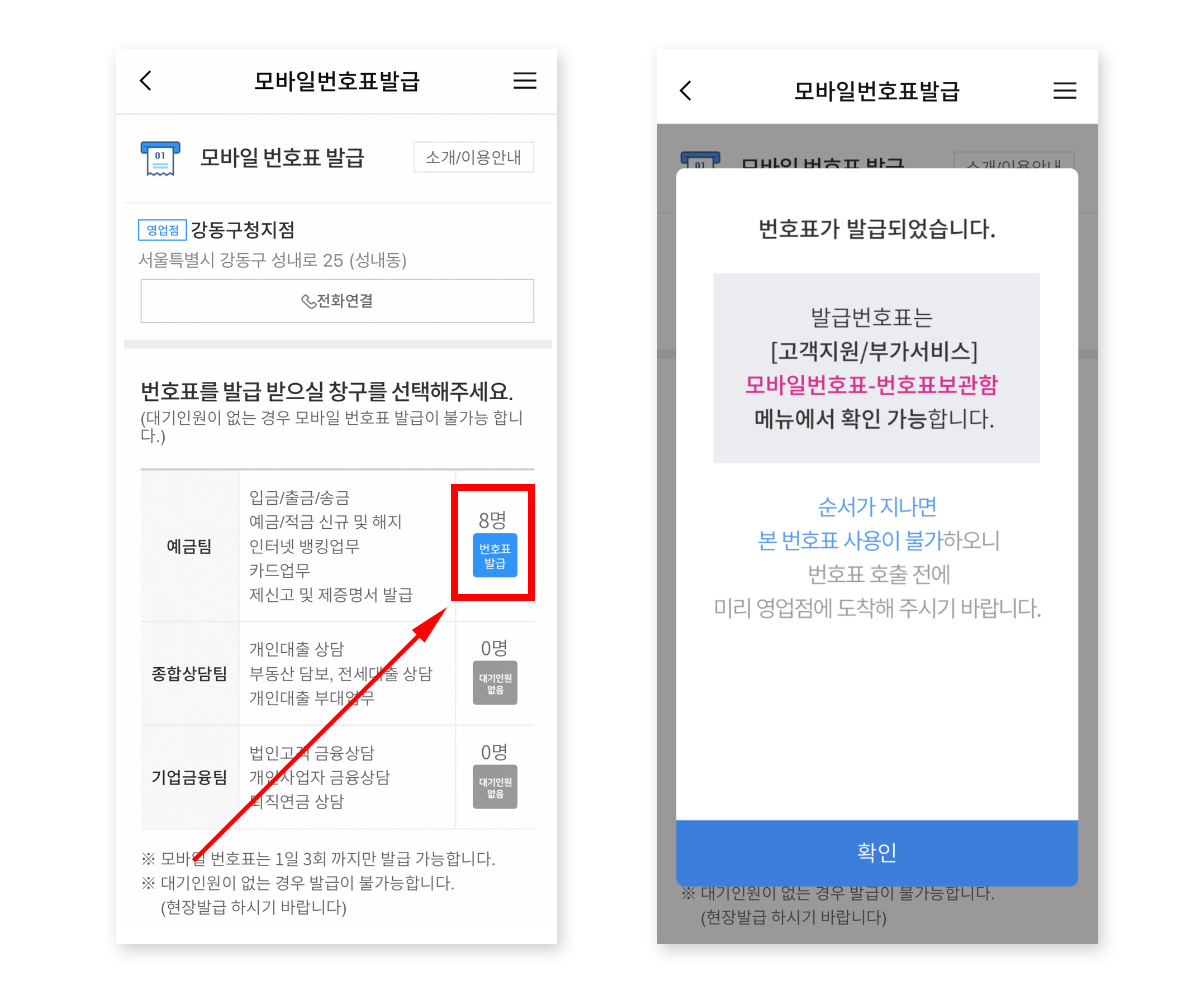 모바일 번호표는 하루에 최대 3회까지 발급받을 수 있습니다.