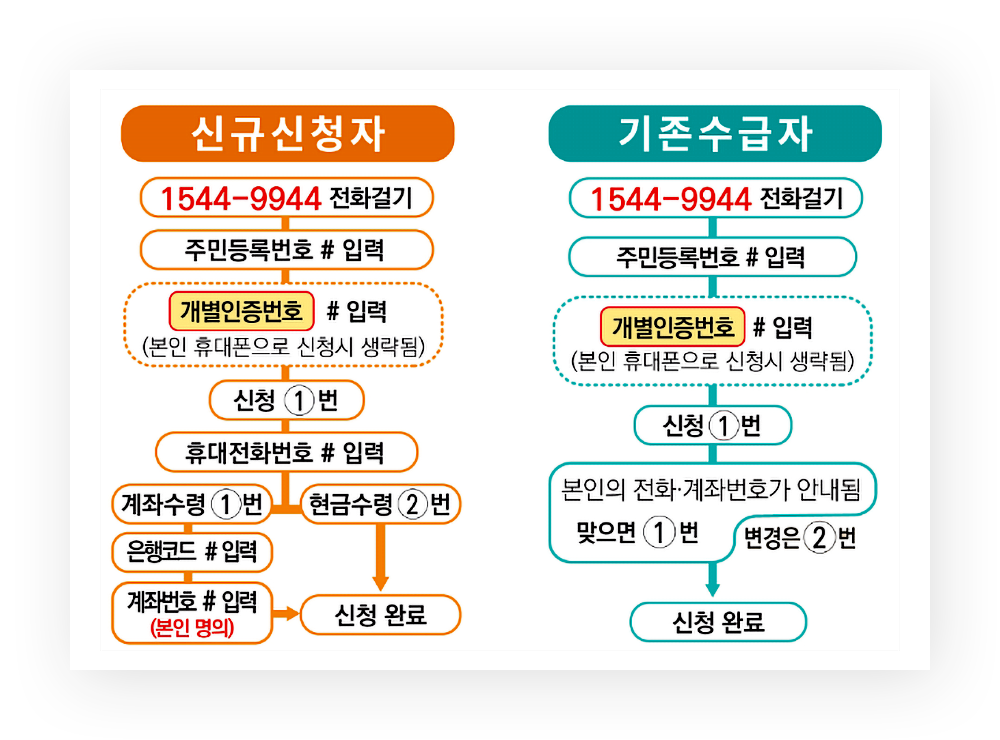 1544-9944 또는 장려금 상담센터 번호 1566-3636을 이용하여 전화로 신청이 가능합니다.
