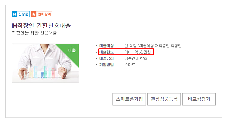 IM직장인간편신용대출 한도 및 금리는 다음과 같습니다.