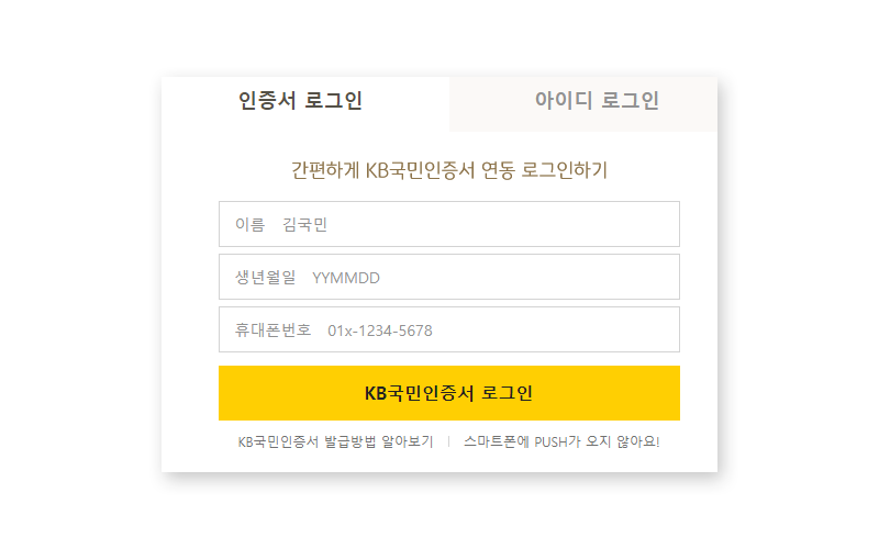 KB 국민은행 홈페이지 접속하여 공인인증서로 로그인합니다.