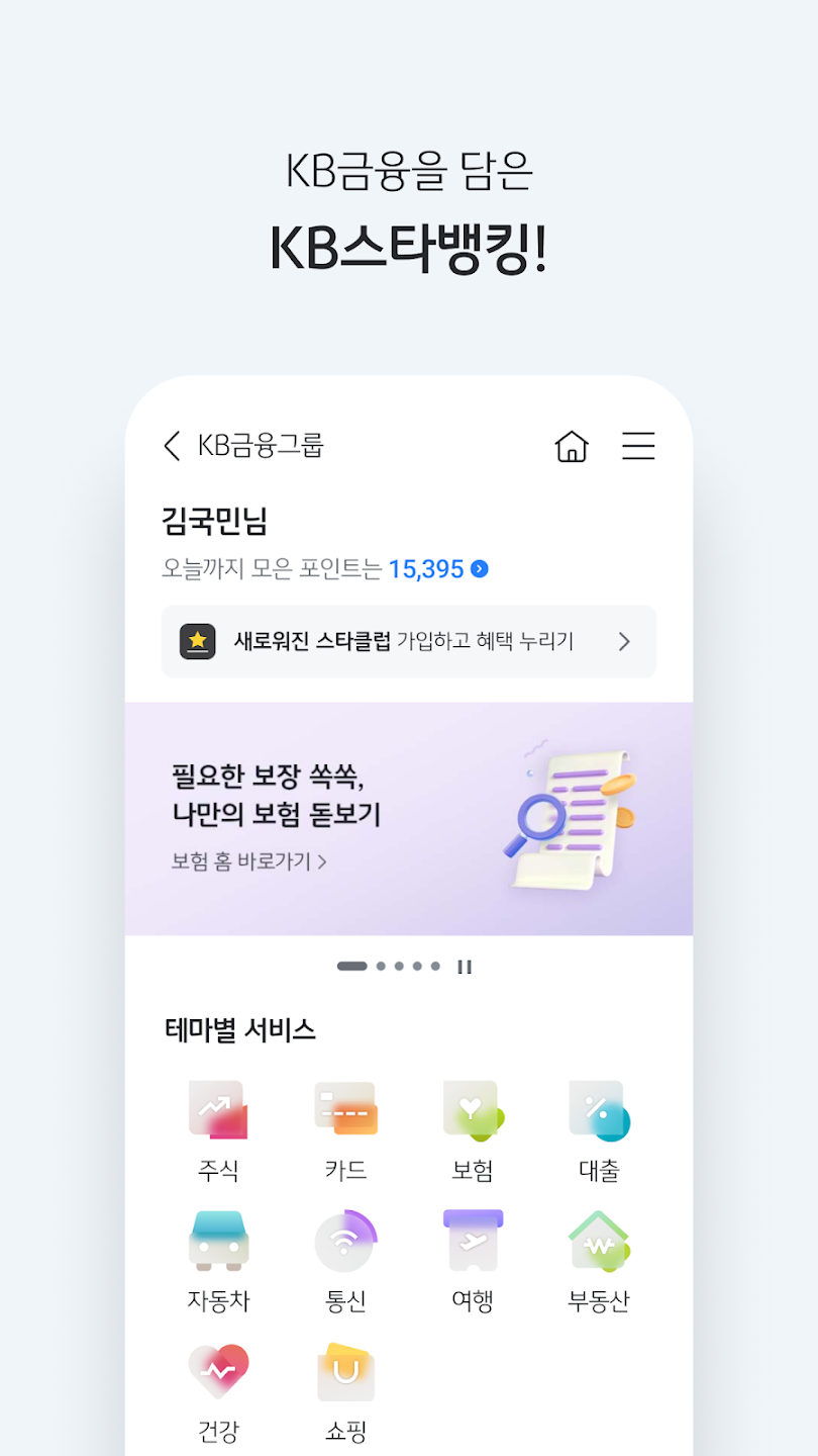 먼저, KB스타뱅킹 앱을 스마트폰에 설치하고 로그인합니다.